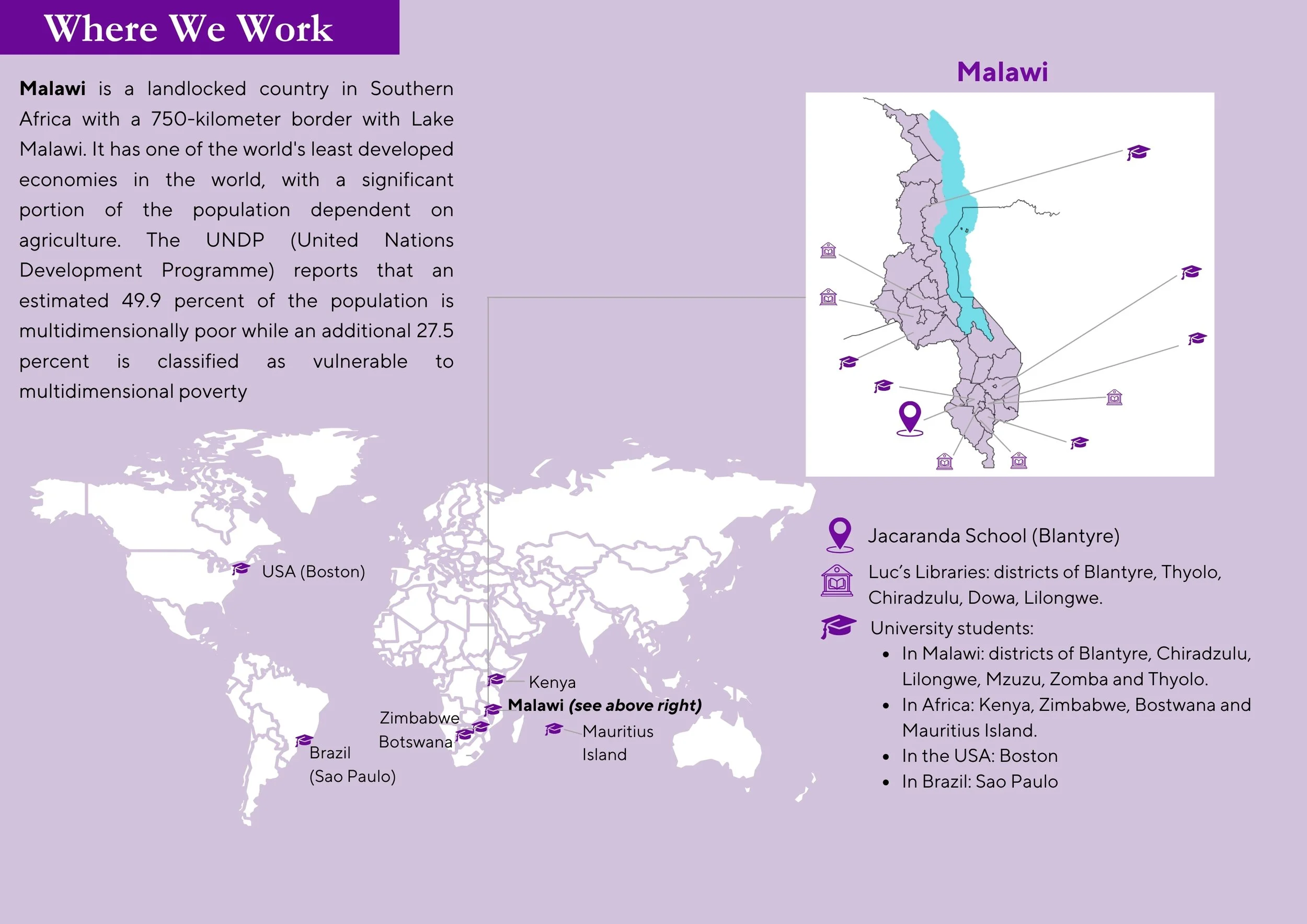 Founded in 2002, the Jacaranda School for Orphans has changed the lives of thousands of children. We provide comprehensive, free education and care to orphans and vulnerable children in Malawi through our Preschool, Primary School, Secondary School, Vocational School and University Scholarships programs.